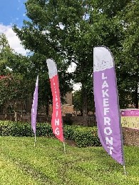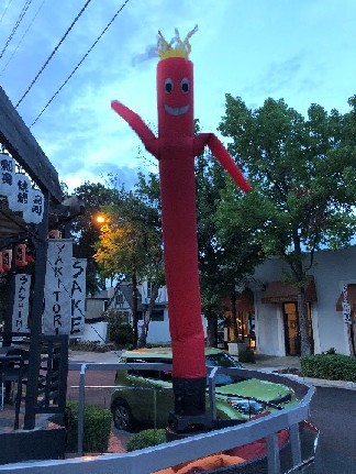 Signs, objects, or devices intended to attract the attention of the public that are installed on or in the ground, to a light pole or fence, or on the side or roof of a building, and that move, flicker, flap, flash, gyrate, or make noise using compressed air, wind, electrification, or other means. Attention-Attracting Devices include Air Dancers, pennant string flags, feather or sail banners, signs with a revolving beam, Beacon, or searchlight, signs with a light or lights resembling an emergency vehicle or traffic control signal, or as determined by the Planning Director.