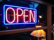 OPEN SIGNS A sign measuring 72 square inches or less that is hung on the interior face of a window or behind a window and that indicates whether a tenant or building is open or closed. An Open Sign may use electrification or neon but may not blink, flash, scroll, or utilize moving lights or characters.